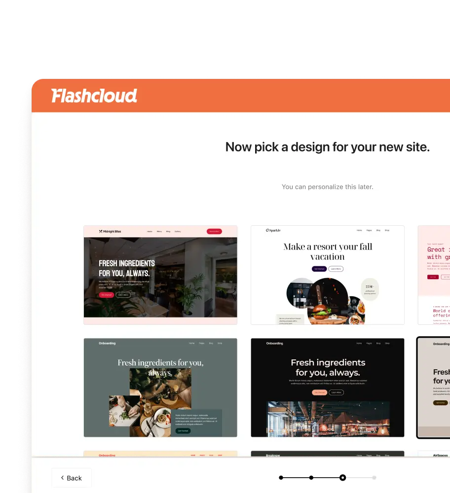 Every Flashcloud plan includes a free starter website. Designed around your business, not pulled from a template. Tell us what you need, and we'll build a professional site ready to launch.